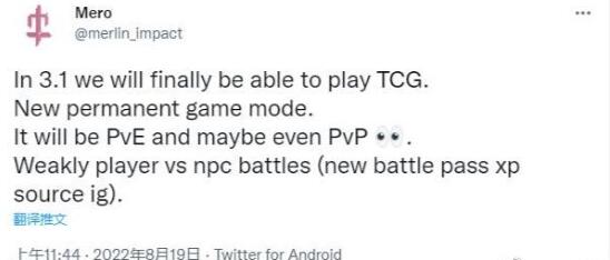 一位专注于挖掘《原神》数据的用户“merlin_impact”爆料称,《原神》计划在未来添加新的永久游戏模式,具体内容是一种TCG卡牌游戏。