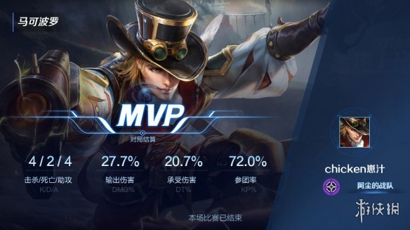 本局MVP给到马可波罗。虽然马可已经被削弱,且目前各模式胜率均为射手垫底,但在BYG选手的手中依然能打出惊艳的效果。2技能与大招位移的灵活运用,让其成为战场上的鬼魅。