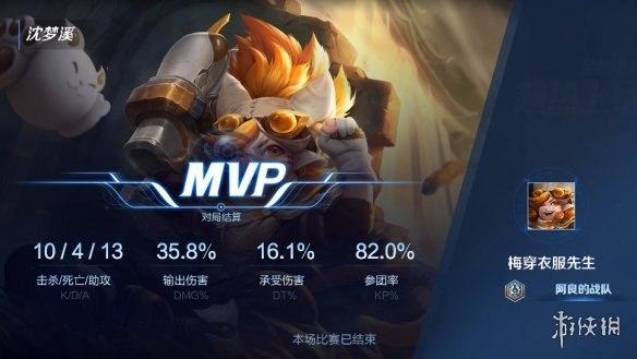 本局MVP给到沈梦溪。炸弹猫有一定的难度,在确保炸弹命中率的情况下才能有高额输出。阿良队的沈梦溪不仅凭借手长的优势远程消耗,而且多次支援队友带节奏,82%的参团率证明其拿MVP当之无愧。