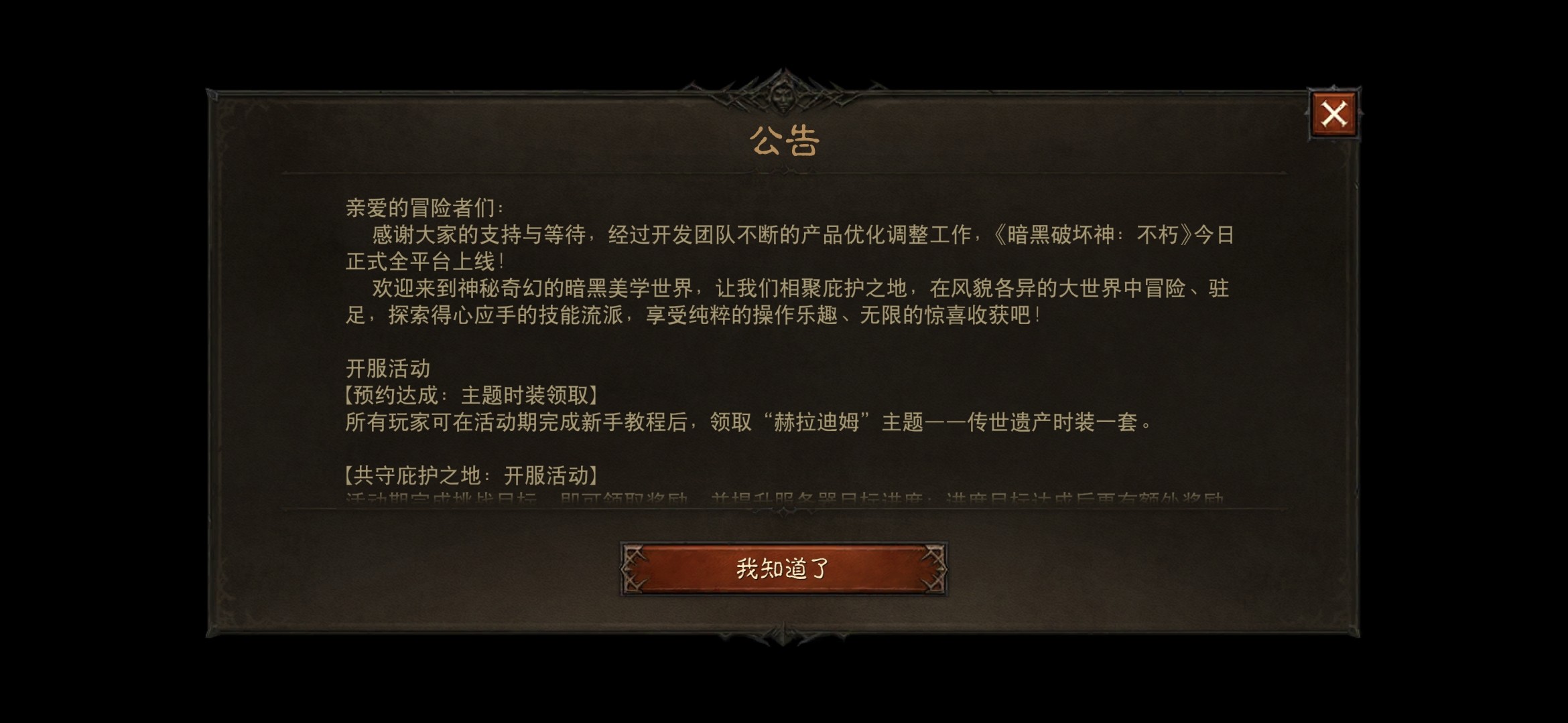 感谢大家的支持与等待,经过开发团队不断地产品优化调整工作,《暗黑破坏神:不朽》今日正式全平台上线!