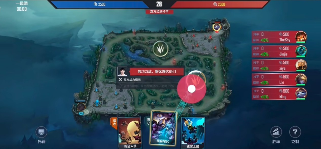 简单来说,在《英雄联盟电竞经理》中,一场职业比赛被拆分成了从对线到资源争夺再到决胜团的数个回合,同时以猜拳式卡牌系统来呈现队伍在单个回合上的关键决策行为。玩家在游戏中只能对一场比赛做战略大方向上的定义,为打野写好“保下”或是“抓上”的剧本,给下路定好“帮先锋”还是“保发育”的规矩。至于“开局换线”、“假打龙真开团”或者“放资源偷家”这种细节战术,目前还无法在《英雄联盟电竞经理》中实现。