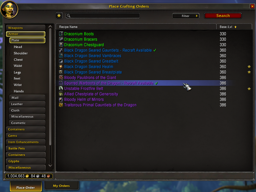 所有这类装备都是灵魂绑定的,所以你只有两个选择:自己制作物品,或透过制作订单请别人为你制作。