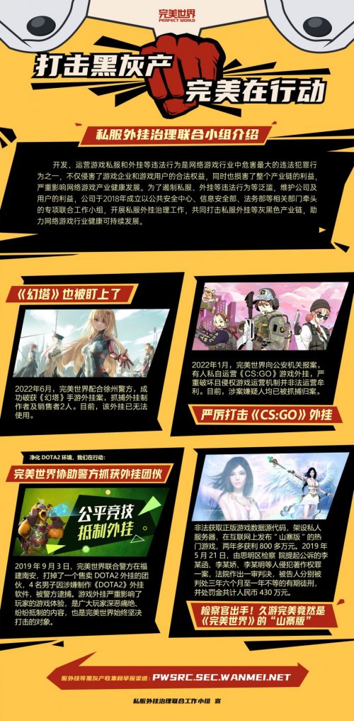 打击黑灰产业,完美世界在行动。