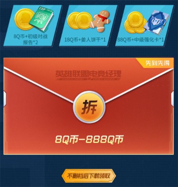 战队心悦下载,抢Q币大礼包!活动期间,英雄联盟电竞经理战队组队成功的玩家,团队3人均在心悦俱乐部下载游戏并完成注册,可获得下载大礼包一份,还有机会额外抽取Q币奖励一份,Q币先到先得,送完即止,该礼包单帐号仅限领取1次。