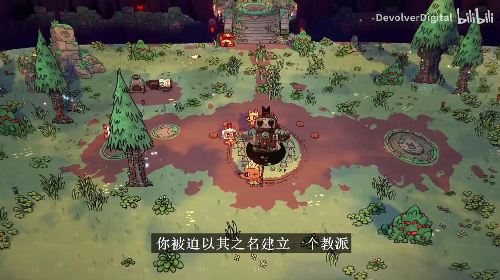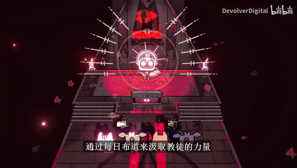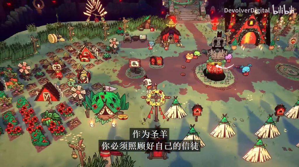 Devolver Digital 旗下动作冒险 + 策略模拟游戏《咩咩启示录》(cult of the lamb)即将于 8 月 11 日内登陆 PS5/PS4/Xbox Series X|S/Xbox One/Switch/PC 平台,官方现放出了本作全新玩法介绍视频,教大家用三步管理好自己的教派。