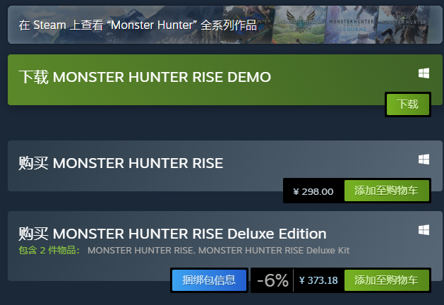 6月6日,《怪物猎人:崛起》Steam国区基础售价现已下调,标准版由396元降至298元(约下调25%),豪华版由466.3元降至373.1元(约下调20%),感兴趣玩家可趁低价入手!