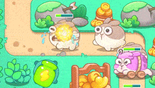 随着关卡推进,玩家会不断获得新的呆兔,然后将它们收养在“兔子窝”里。小伙伴们可以利用男主角阿波演出获得的道具和金币进行呆兔养成,满足兔子们的要求,比如用饼干、牛奶等食物喂饱兔子,提升好感度,也可以通过家具装修、呆兔装扮等功能,把属于你的兔子窝装潢一新,实现“云撸兔自由”。