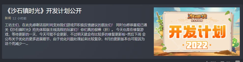 昨天(6月1日),国产沙盒游戏《沙石镇时光》官方发布了抢先体验计划的最新公告,其中在感谢了玩家们支持的同时,也放出了三批年内大型更新内容的前瞻说明:第一批大更新内容会在8月份正式上线,第二批会在国庆期间上线,而第三批上线的时间约为圣诞节。