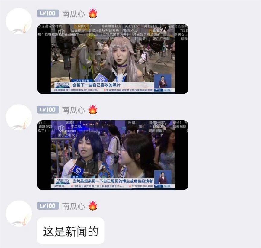 当然要说传播最广的抽象事件,还得是上海电视台的采访。因为摄像机是直出,且没有讲究什么角度和打光,就导致这成为了许多Coser的黑历史,于是他们纷纷在相关评论区发照片“以证清白”