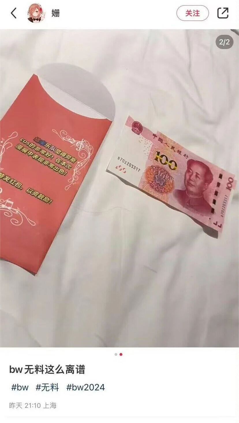 漫展发无料这事我想大家都明白,但今年貌似真的有富哥模拟Cos角色的行为,直接发红包和黄金.......