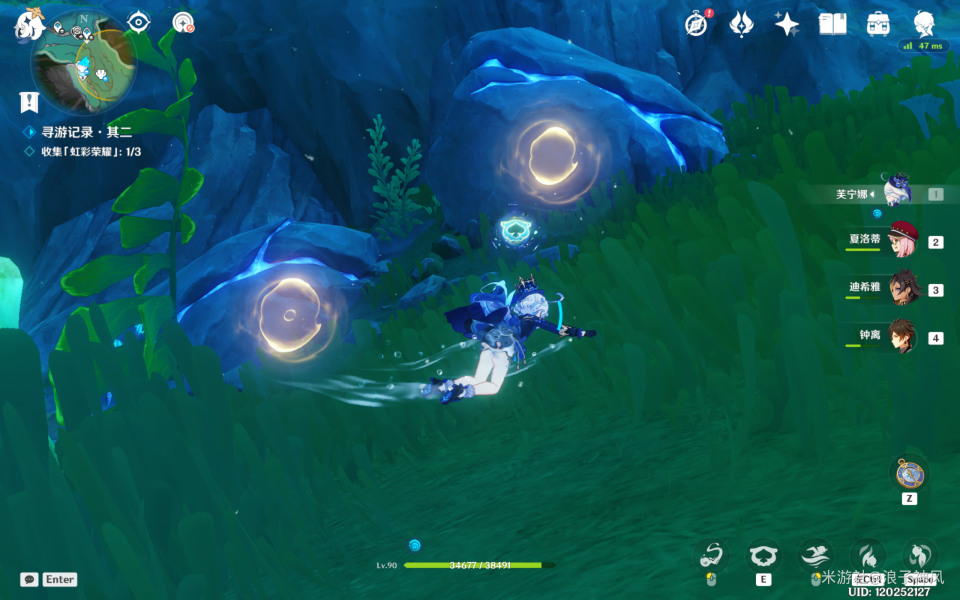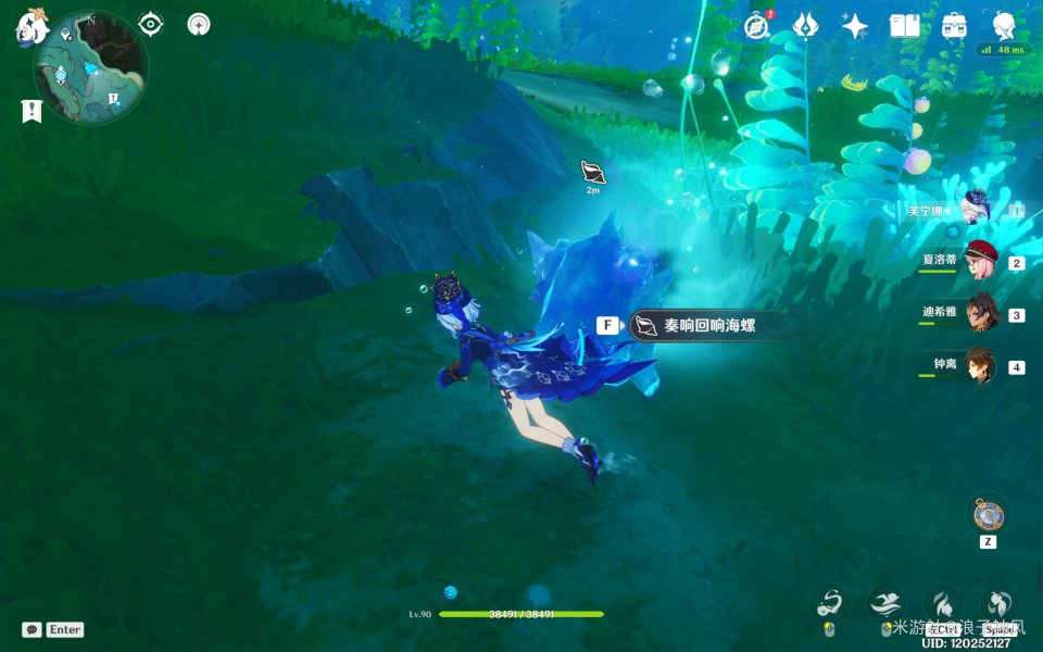 吹响海螺,即可标记出需要采集的三个物品标记。获取异色水母的炸弹能力,一会有用。