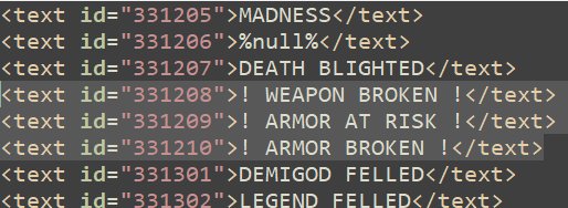 根据推特魂类游戏数据挖掘者JesterPatches的说法,在《艾尔登法环》的后台数据里,游戏最初的设计中拥有装备耐久系统,它可以让武器和盔甲逐渐失效,并最终随着时间的推移完全损坏。当玩家的武器和盔甲耐久度低时,游戏会有“损坏”或“处于危险中”的提示。