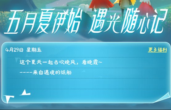 光遇是目前非常受玩家青睐的一款社交型游戏。而对于光遇玩家来说,在体验游戏的同时,最不容错过的就是上大神光遇参加各类新活动以及领取各种丰富的游戏福利!大神光遇就开启了五一新玩法:参与活动即可白P蜡烛、季卡、TGC斗篷等超诱惑福利,大家可千万不能错过哟!