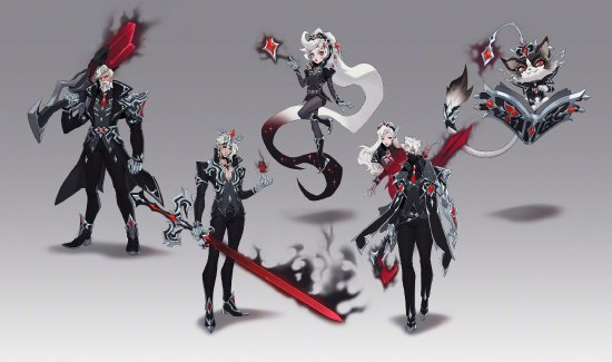 正如幕后故事片中所言,本次EDG皮肤设计,有多位艺术家参与,@愚子CiteMer 就是其中之一,他参与了前期概念设计,今天他也在微博分享了设计稿和创作思路。最初我们根据EDG队员的需求提炼了几个关键词:严肃、反派、黑魔法和现代幻想,我马上就联想到了帅气的黑手党使用黑魔法的样子,就诞生了这套红黑的方案。
