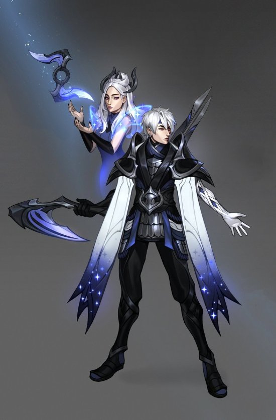 之后我们收到了来自EDG的第二次反馈,想要加入一些中国元素和盔甲,以及尝试蓝色的配色,所以我以银龙骑士和龙鳞铠甲为基础,根据传统云雷纹和蟠螭纹的特征,调整出了最终的方案。