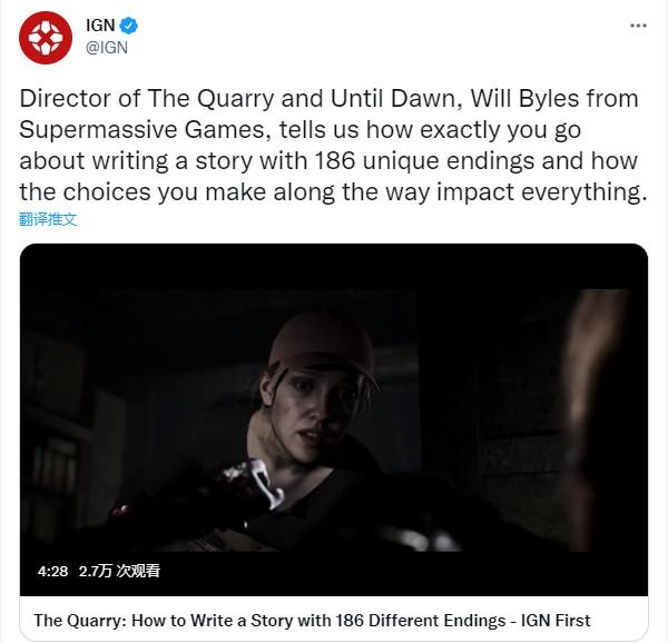外媒 IGN 近日采访了《采石场惊魂》的总监 Will Byles,他表示本作将拥有多达 186 种结局,游戏剧本的篇幅超过了 1000 页。