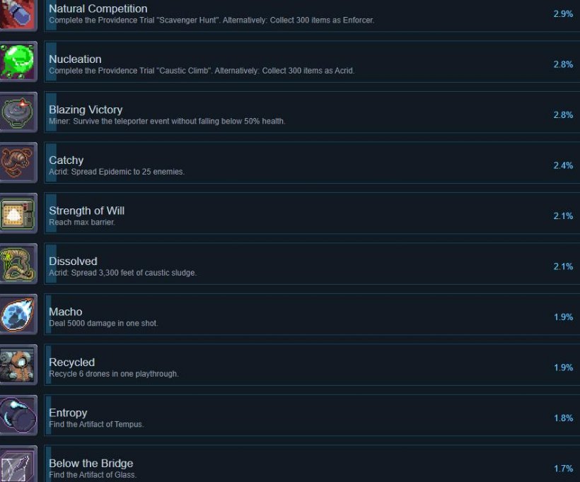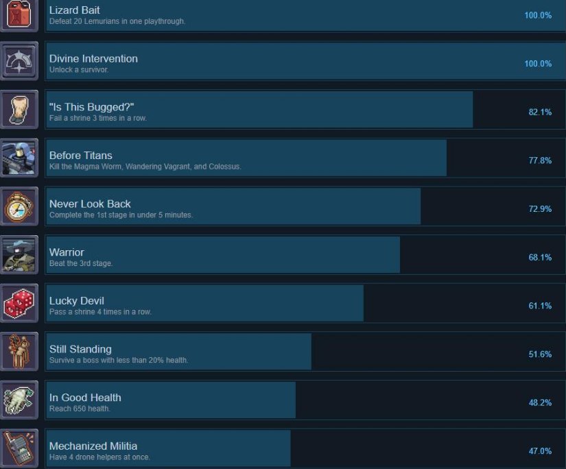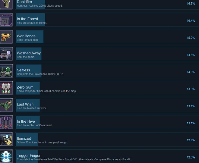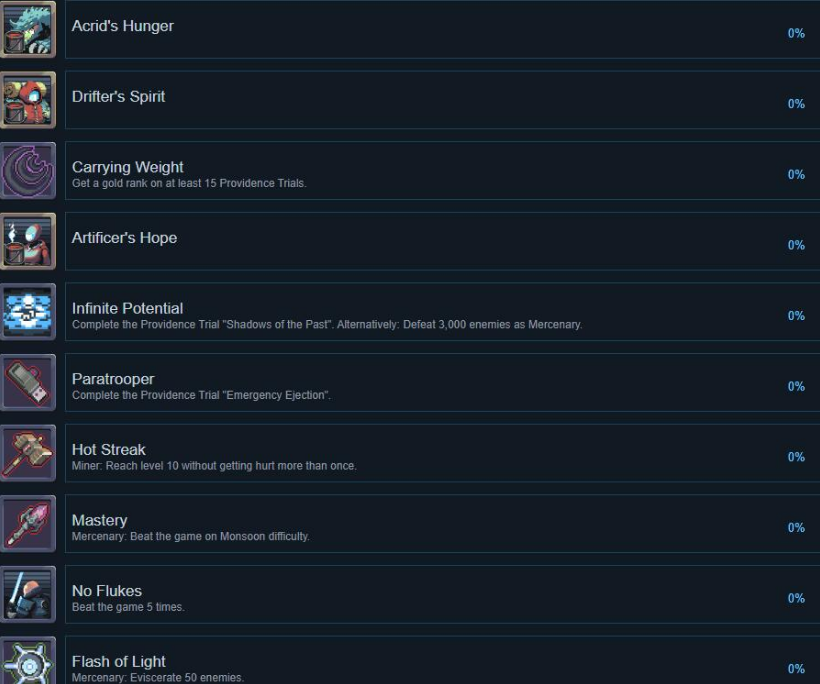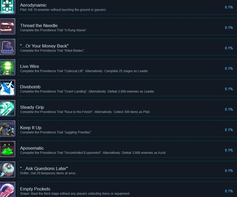 那么以上就是关于雨中冒险回归成就有哪些的全部内容了,希望能为各位玩家们带来帮助,想要了解更多游戏攻略及资讯请持续关注多特游戏。