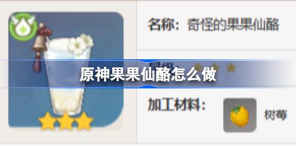原神有很多食物可以制作,可以为旅行者提供一些生命回复,体力恢复以及其他增益效果,其中的果果仙酪大家知道怎么做吗?下面为大家带来的具体内容,感兴趣的玩家们千万不要错过哦!