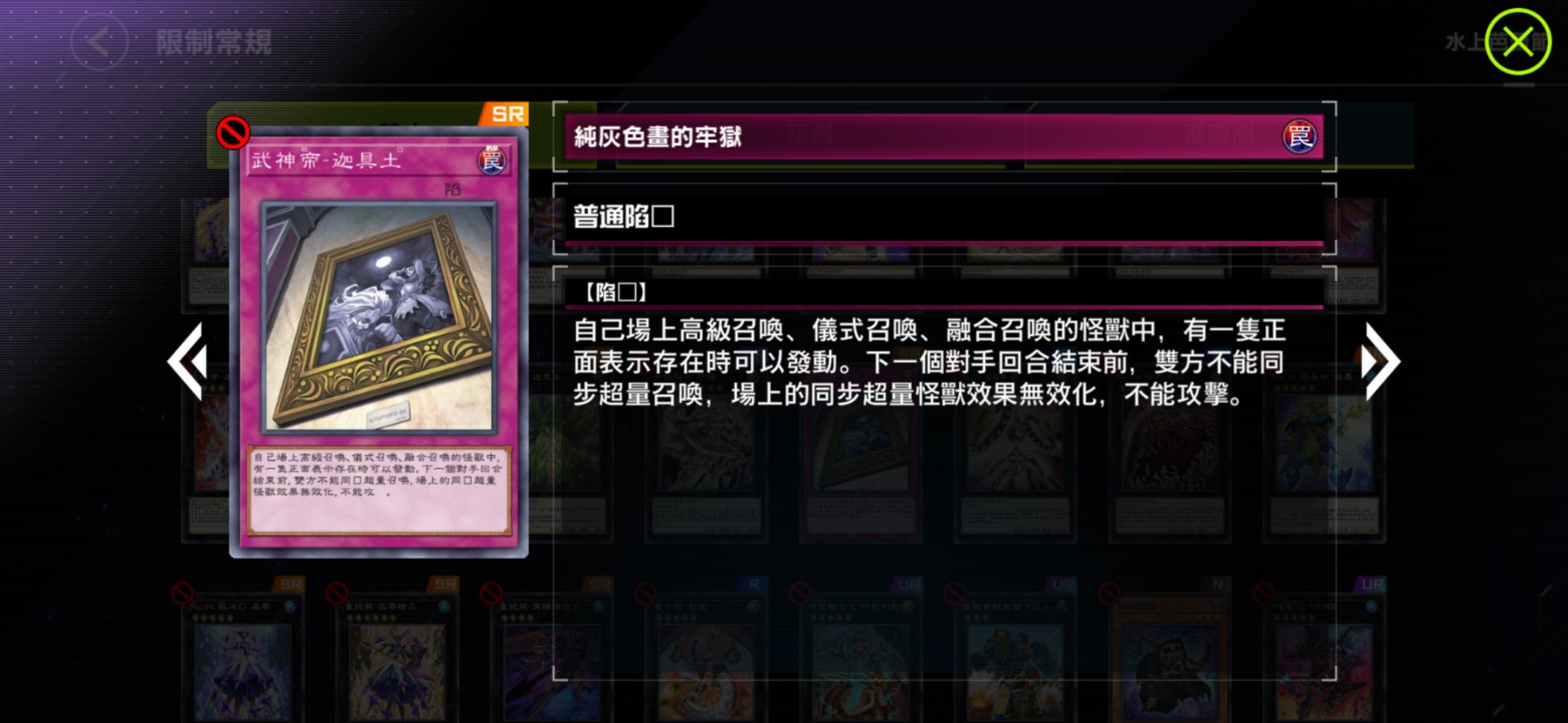 基本上所有干扰同调,禁止特殊召唤,针对同调怪兽的卡,帝王系列,仪式宣告者,自爆卡组,邪遗式,影灵衣,鬼计削卡,大部分特殊胜利卡,连青眼一刀哥都禁了