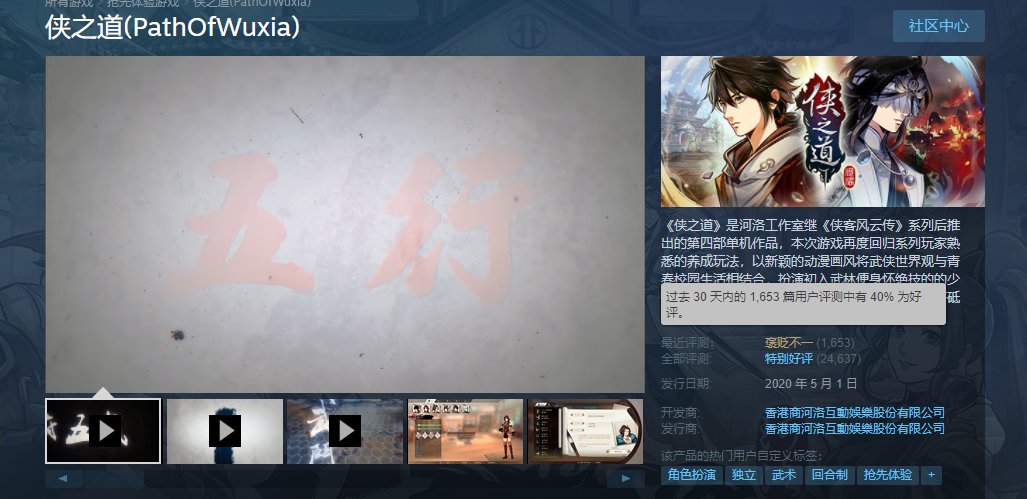 在近日发布的游戏评价中,大部分的差评都在指责《侠之道》第三年明显赶工,同时玩家扮演的角色、选择的线路对游戏剧情走线几乎“起不到作用”,不少玩家直接地表达了自己的失望。