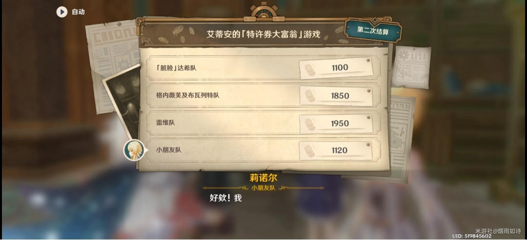 对话结束后我们回去与莉诺尔等人对话得知第二次结算的情况