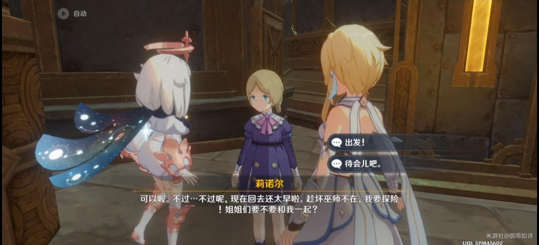 对话结束后,我们需要陪她去探险(这边我们跟着她走就行)