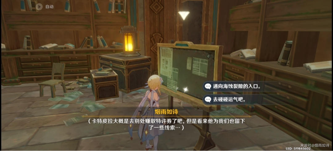 醒来后,我们来到黑板处获得赚取特许券的线索
