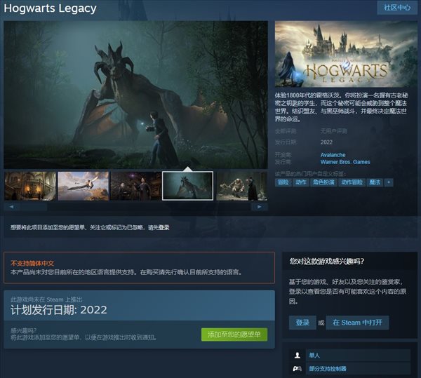 >>>《霍格沃兹:遗产》Steam页面