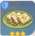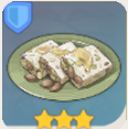 描述:馅料丰富的甜点。先将糖水熬制到清澈,再与馅料和须弥芝麻酱一起混合,最后等搅拌均匀的糖浆在模具内晾干成松脆的成品即可。据说在寒冷的至冬国也有相似甜点,只是口味略有不同。当然,两国人民自然都认为自家的蜜糖才是全提瓦特最好吃的。
