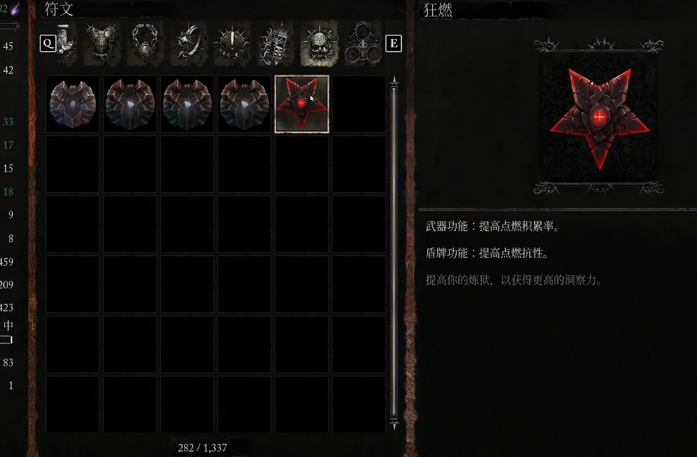 4、符文狂燃的属性还是很不错的,能够提高武器点燃积累率以及抗性。