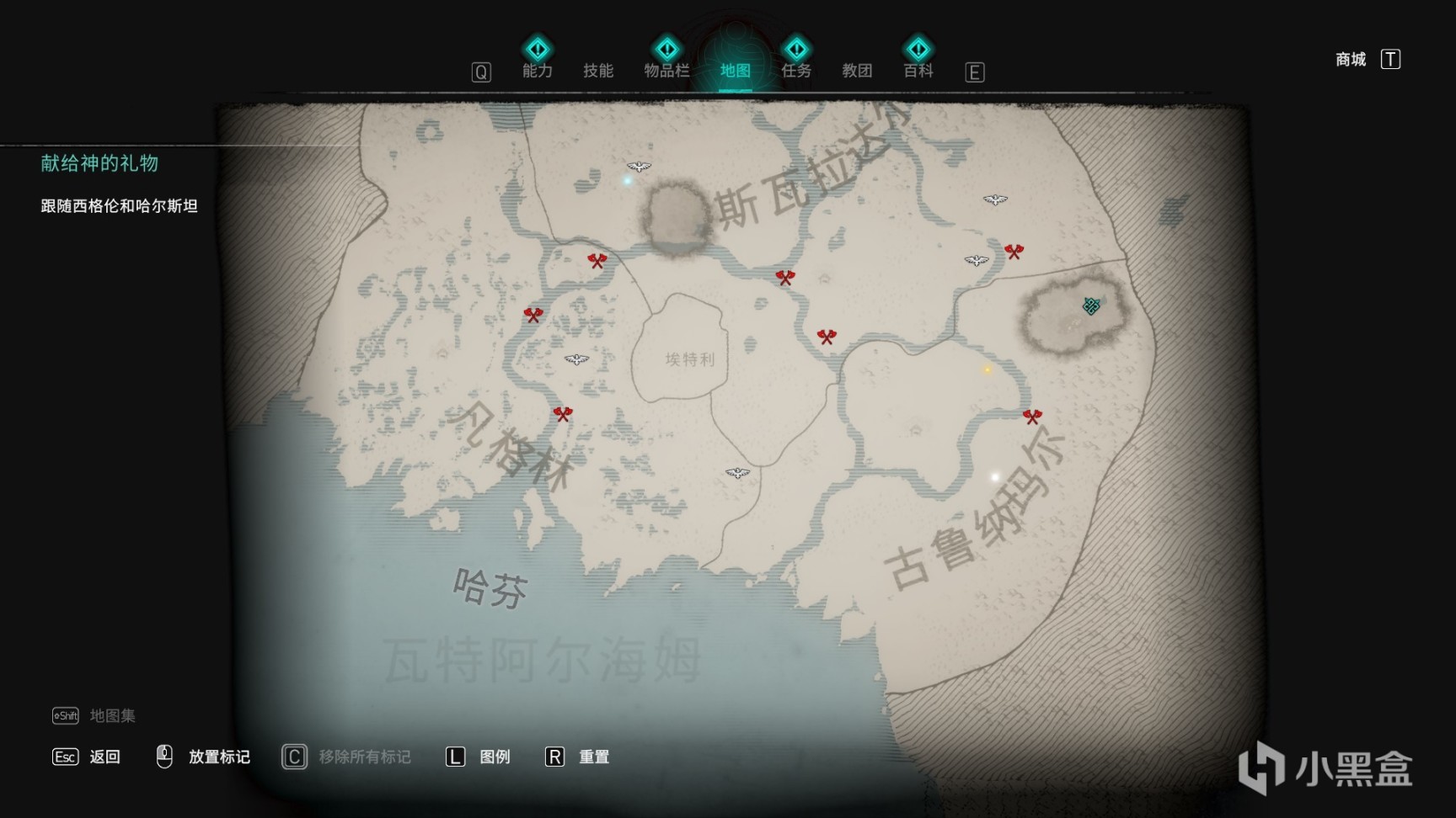 除了令人倍感无语的劫掠,许多本体中的玩法都来到了这个世界,其中也包括“消除诅咒”。本体中玩家需要用弓箭射击发光的红色骷髅才能将诅咒消除,而在末日曙光dlc中,“消除诅咒”变成了另一个名字,玩法也是完全相同的,只不过场景变成了冰天雪地,一个地点需要消除的也不止有一个诅咒标记。