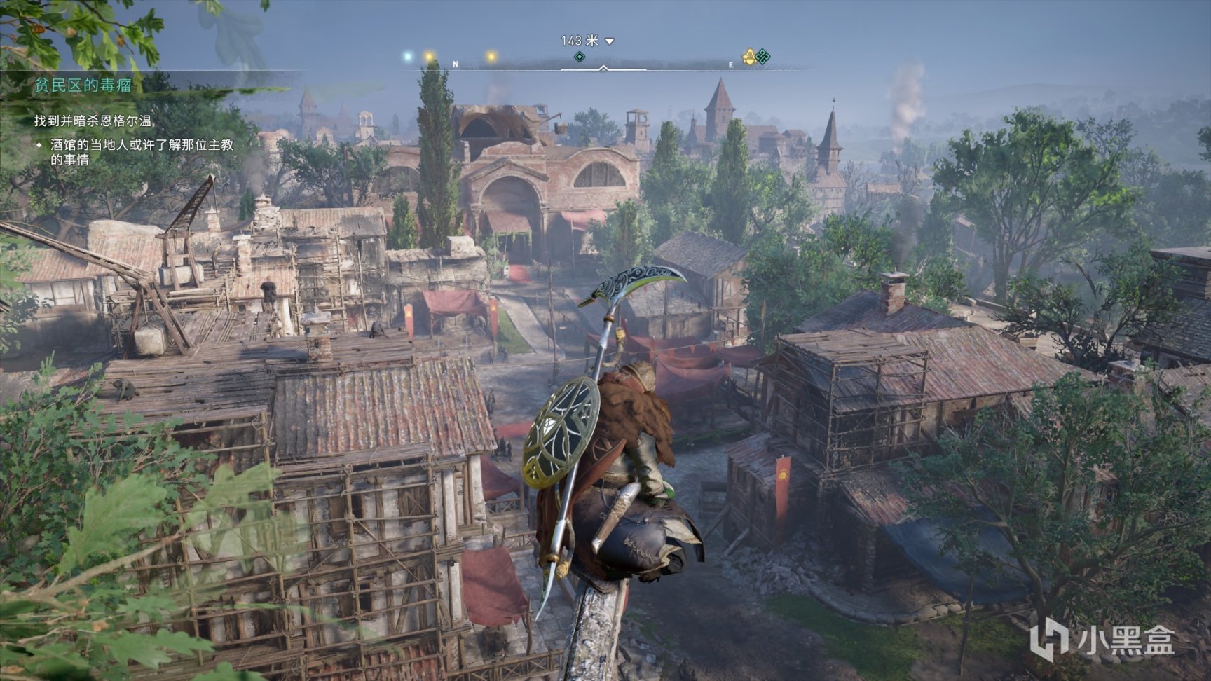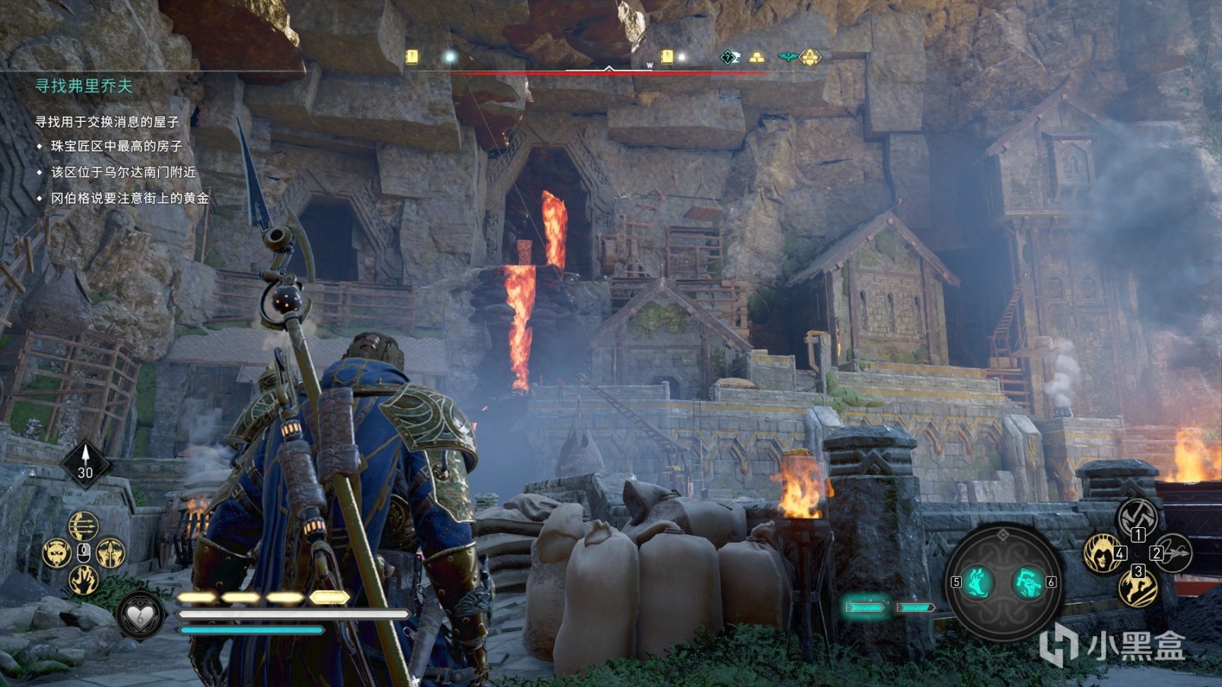 在瓦特阿尔海姆中,玩家能看到许多有别于本体,甚至是阿斯加德和约顿海姆的壮丽奇观。无论是燃烧的世界树,浮在空中的巨石,遍布地面的岩浆和矿石,还是偶尔出现的雪地,令人震撼的巨石像,甚至是街上融合了北欧传统建筑风格样式的神话建筑,都让人感到眼前一亮。归功于育碧一直一来都十分优秀的美术,我对这个世界的初印象绝对比在进入《刺客信条:奥德赛》亚特兰蒂斯时要震撼的多。