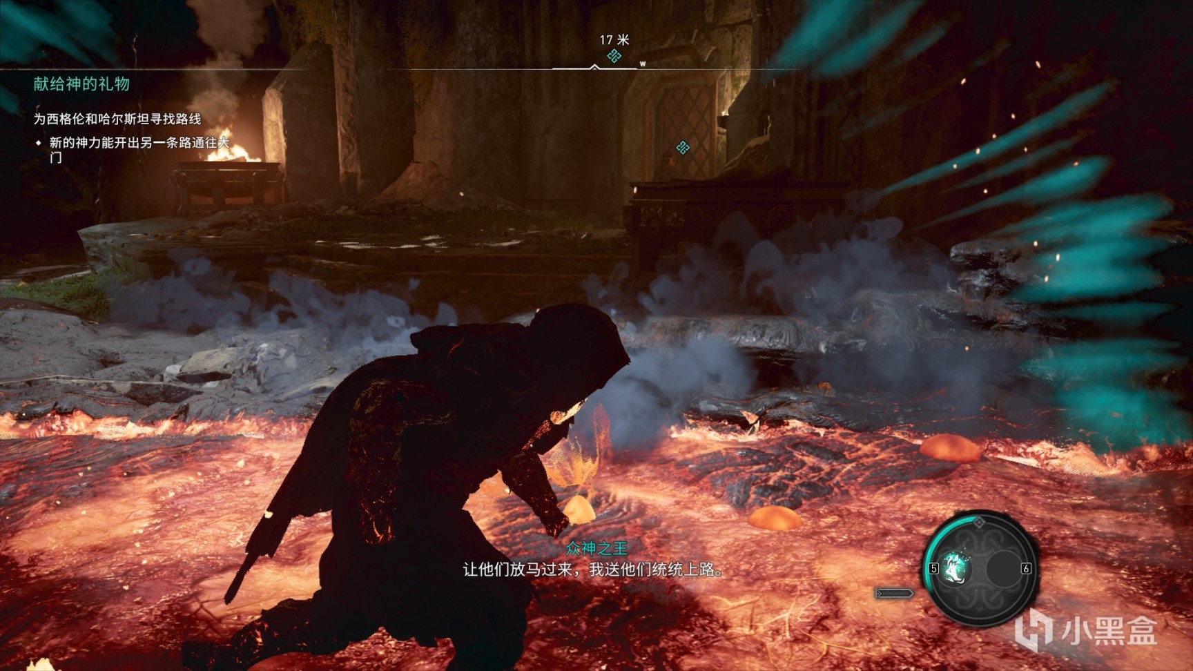 由于前期游戏中设置了大量需要穿越岩浆才能获得的珍贵物品,而且不少地区敌人强度很高,因此能让奥丁安全穿越岩浆和隐藏在火巨人中间的“穆斯贝尔海姆之力”是我在这个阶段使用最多的神力。