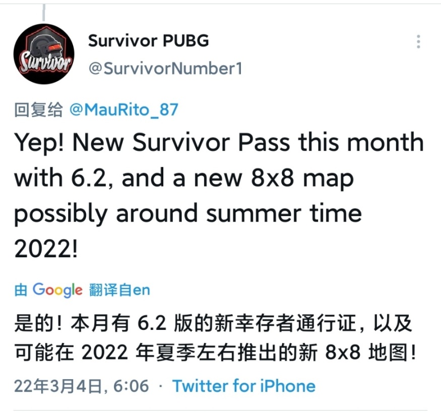 来自于博主@Survivor PUBG的爆料,有趣的是绝地求生官方也关注了他。加上之前社区朋友发的萨诺地图局部地区更新也是该位博主爆料的,所以可信度极高。