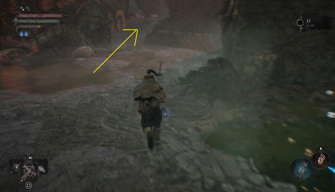 从独木桥过去。(如果独木桥没开启,先开影界从下方湖过去,绕到另一头能开启近路)