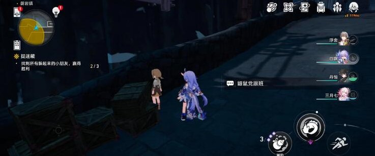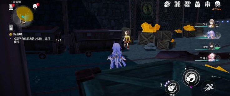 在崩坏星穹铁道中,玩家接取到捉迷藏任务后,第三个小孩在地图的右上角的位置箱子旁边,另外两个小孩分别在地图的左上角的位置,以及在左下角的位置矿车的后面。