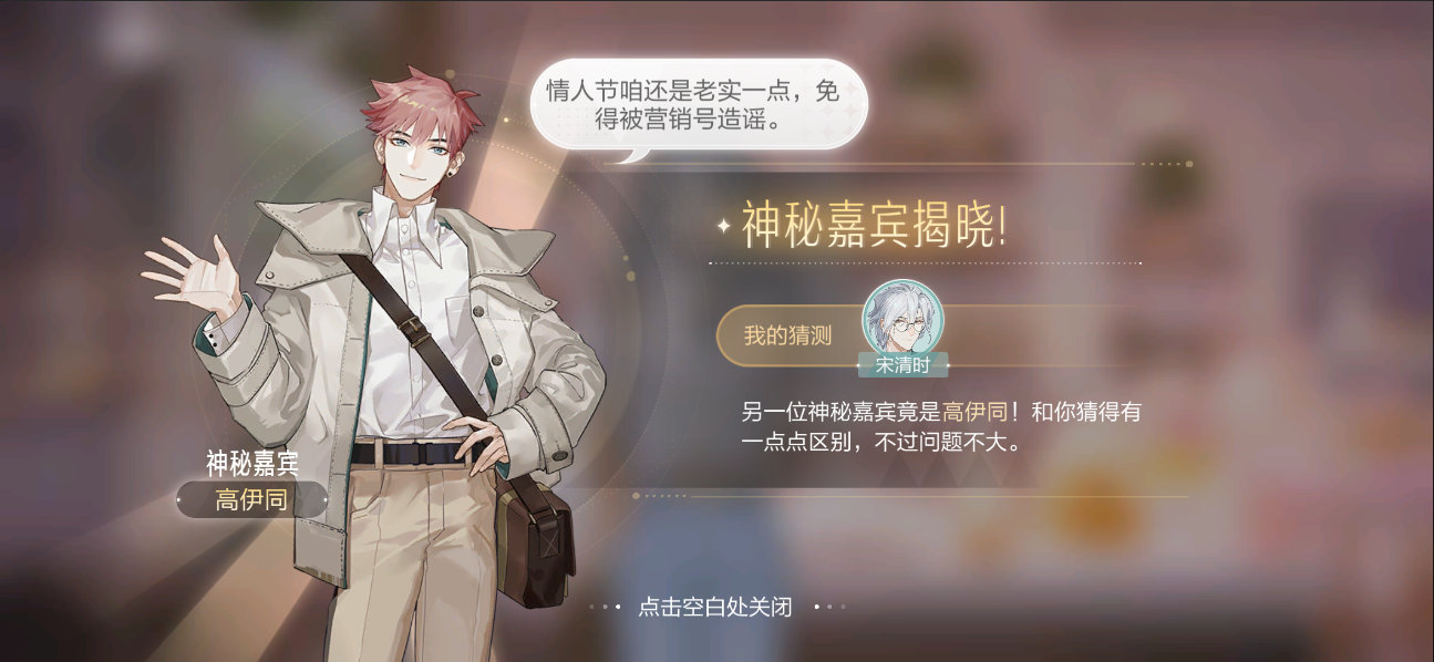 最后“神秘嘉宾”也会现身,和玩家一起在用餐区互动。这位神秘嘉宾,即可能是大家的经纪人、 助理,也可能是特地前来和各位女明星共度情人节的红心好友。工作、约会两不误,大家的情人节也是很丰富了!