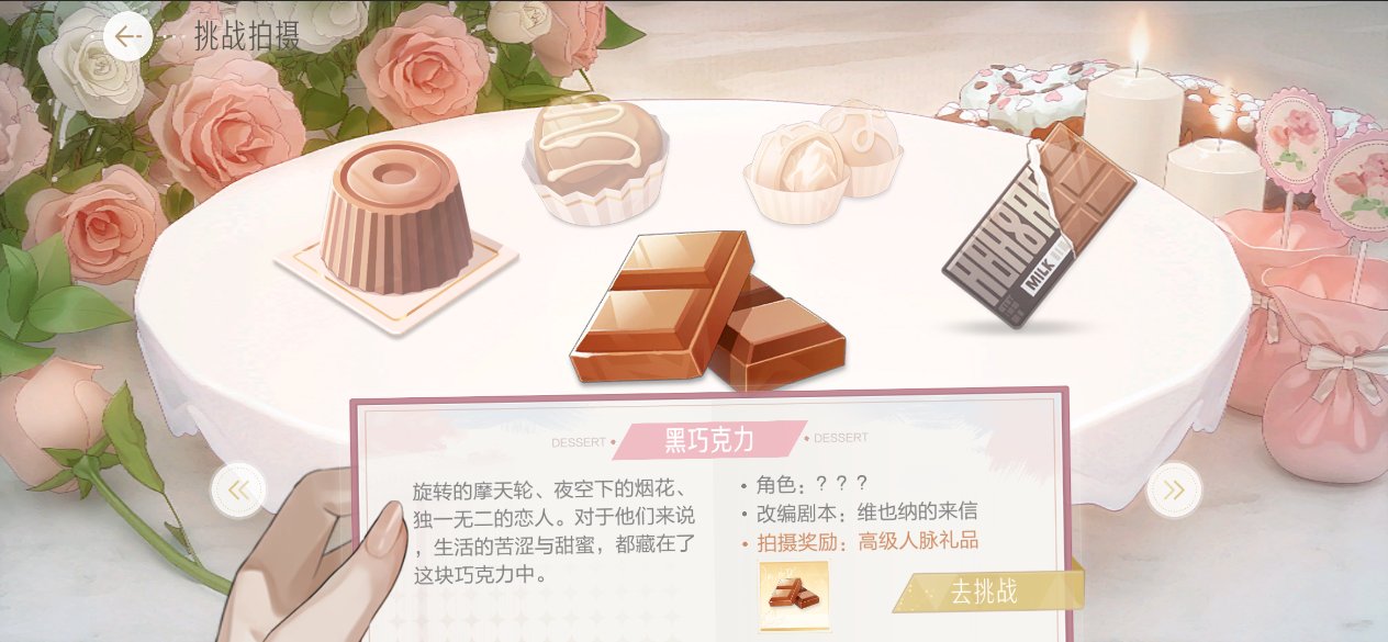 在游戏中还有着“人脉”玩法,玩家可以将巧克力奖励送给人脉圈里结识的好朋友,以提高好友的好感度。不知大家是会将巧克力送给圈内的导演、艺人前辈,还是作为情人节礼物送给对自己来说特殊的那一个人呢?