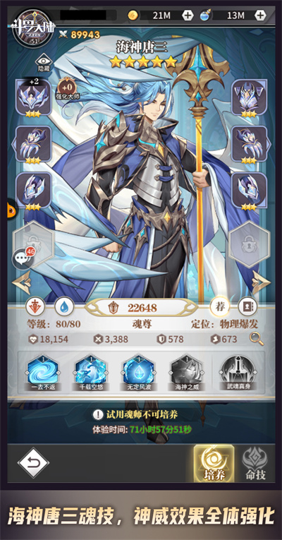对于唐三各位玩家应该很熟悉了,作为斗罗大陆的大男主角,不仅获得了海神之力,还成就了一级神神位,同时也是斗罗神界的十八位主神之一。而海神唐三手中的海神三叉戟,也是大家曾经非常羡慕的力量,如今总算是唾手可得了。