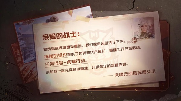 伴随着爆竹声响,红烟在核弹小镇-新春中弥漫开来。据点遭受重创,神秘组织带来援助,任务代号-虎啸行动正在展开,各位战士们大展身手的时候到了。近日,《使命召唤手游》全新版本“虎啸行动”即将开启,游戏即将迎来重磅更新,指挥部特派全新枪械、新战术道具等支援物资,还有全新地图、经典玩法回归带来不同体验,请战士们做好准备前往据点,和指挥官艾本一起完成任务吧!