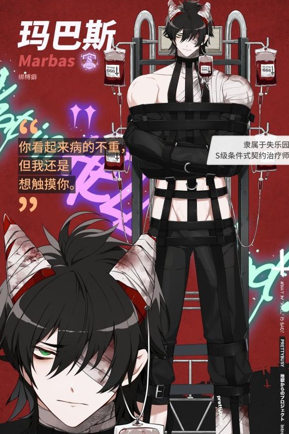 玛巴斯是S级条件式契约治疗师,隶属于以路西法为国王的失乐园地区,在某些地方被称为“治愈之手”,在其他地方则被称为“腐败之手”。