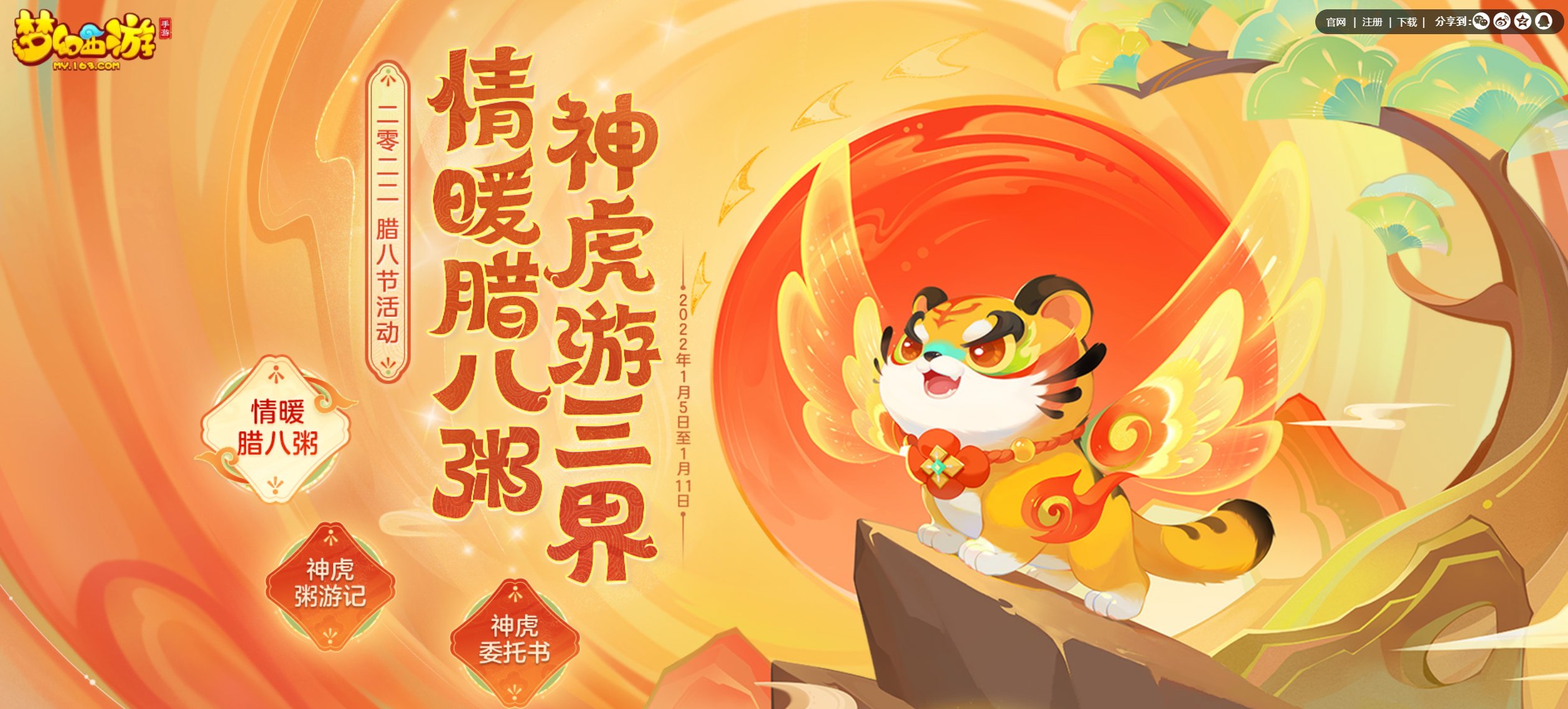 渐入深冬,《梦幻西游》手游2022腊八节活动也如期而至。从即日起至1月11日,《梦幻西游》手游也通过此次活动为玩家带来了虎年专属神兽超级神虎,让它陪伴玩家共同开启新的一年。我们相信,在它的协助下,玩家也将在不同的战斗舞台中有更多精彩的表现!