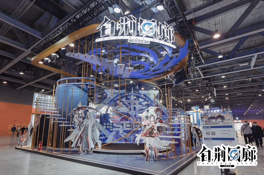 《白荆回廊》是一款以多维世界为基础架构的3D即时策略RPG,此次游戏展台亦是围绕《白荆回廊》世界观元素设定来设计,将主视觉中的概念及已公开PV画面中的天隙通道等内容完美融合,把《白荆回廊》宏大的世界观展现给现场玩家。