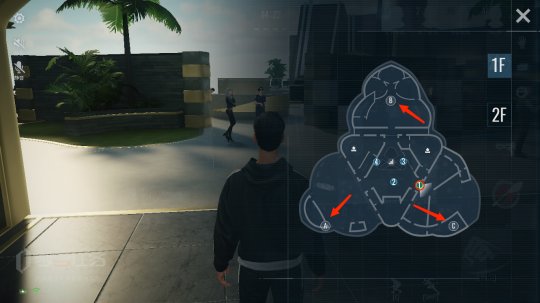 进入游戏后点击左上角的地图,则可以放大地图。如图所示:A、B、C三个点位为我们的破译点。我们距离C点最近,应该直接前往C点进行破译。