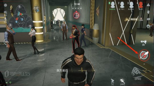 当屏幕下方显示【敌方逼近】时,说明莫比乌斯玩家就在附近。此时,天狼星玩家可以使用右侧的伪装按键,选择【特定动作】,混入NPC中干扰莫比乌斯玩家。