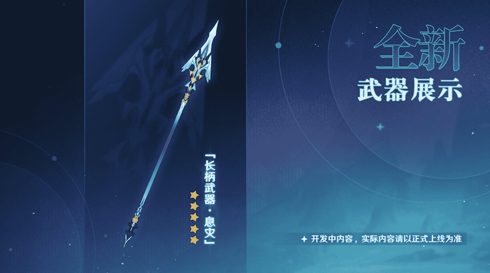 除了新角色之外,全新限定五星武器「长柄武器·息灾」也将在2.4版本与各位旅行者见面。