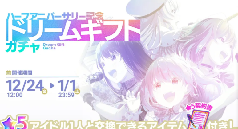 《IDOLY PRIDE》推出 Dream Gift 转蛋池除免费30连外,这次也推出了每人限抽一次的 Dream Gift 转蛋池,只要使用蓝钻进行转蛋后就可获得自选★5偶像的「★5契约书」道具1个。