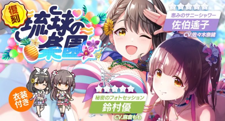 《IDOLY PRIDE》推出「琉球的乐园」復刻转蛋池以夏日泳装为主题的「琉球的乐园」转蛋池将于12月25日復刻推出,想获得期间限定偶像【★5 祕密的Photo session 铃村优】、【★5 恩惠的Sunny shower 佐伯遥子】的人千万别错过!