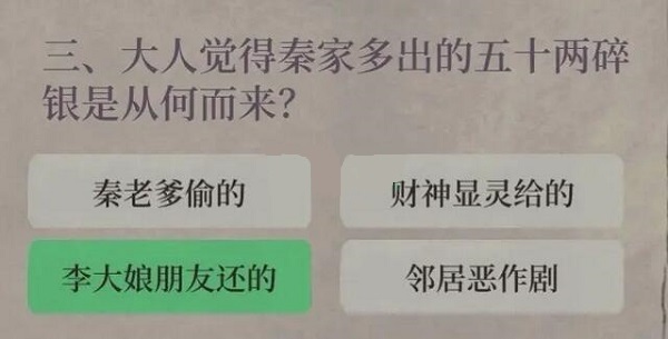 三、大人觉得秦家多出的五十两碎银是从何而来?