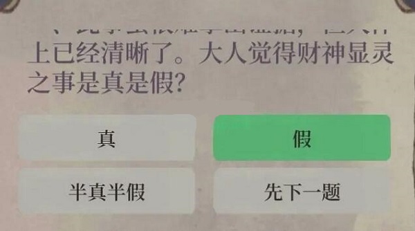 选项:真、假、半真半假、先下一题